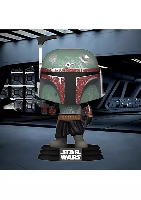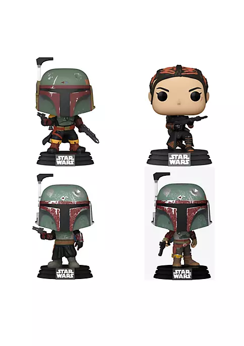 Boba Fett, the unaltered clone/son of Jango Fett, reemerges from the shadows wearing his father’s famous armor and dual wielding blasters. Celebrate the most stellar fandom of them all with the Star Warsโข Pop! Boba Fett dual wielding. Vinyl bobblehead is approximately 5-inches tall. Boba Fett, the unaltered clone/son of Jango Fett, reemerges from the shadows to reclaim his armor. Celebrate the most stellar fandom of them all with the Star Warsโข The Mandalorianโข Pop! of Boba Fett. Vinyl bobblehead is approximately 5.25-inches tall. Boba Fett is looking for his bounty hunting partner Fennec Shand to join him in your Star Warsโข collection as a Pop! Recruit Pop! Fennec Shand to your collection before she disappears. Vinyl bobblehead is approximately 3.75-inches tall. The marshal of Mos Pelgo, a small town on Tatooine, Cobb Vanth has earned the trust of the townsfolk as a capable peacekeeper and leader. Now, he can watch over your Pop! collection as well! Cobb Vanth, as seen in The Mandalorian, dons his familiar looking armor, with his blaster drawn, ready to protect your collection from any nearby Krayt Dragons. From The Mandalorian, Cobb Vanth has been reimagined as a vinyl bobble-head figure. Bobble Head Figure is approximately 4.25 inches tall.