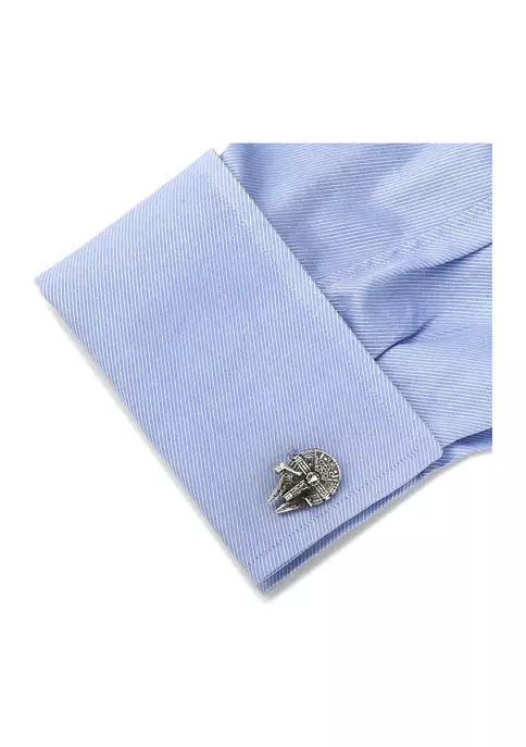 Every Star Wars fan will appreciate the fine details captured in this set of 3D Millennium Falcon cufflinks. Look very closely and you might even spot a tiny Chewbacca getting ready to fly in the cockpit. Features a round swivel backing stamped with the Rebel Alliance logo. Officially licensed by Lucasfilm LTD.