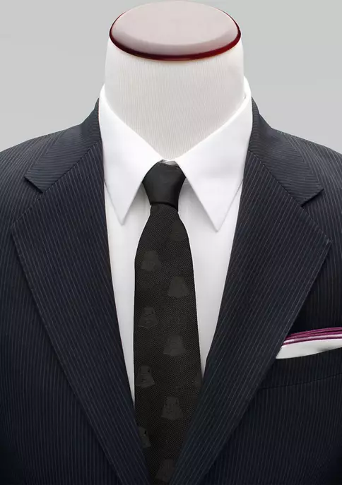 One of our best-selling ties. Every well-dressed man needs a good black tie, and this 100% silk version is ideal. Iconic Darth Vader helmets have been woven throughout, so you can show your Star Wars fandom discretely, no matter what the occasion. Officially licensed by Lucasfilm LTD.