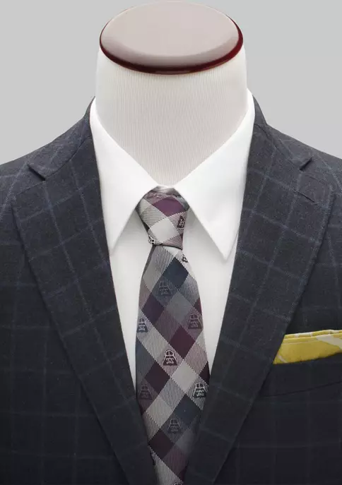 The 100% silk Star Wars tie combines fall’s go-to colors of plum purples and navy blues in a modern plaid pattern with Darth Vader woven into the design. Your fall wardrobe has failed you for the last time. Add the Darth Vader Plum Modern Plaid Men’s Tie to your accessory collection for the fall necktie you’ll want to wear again and again.