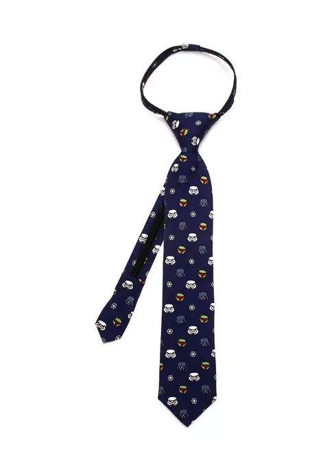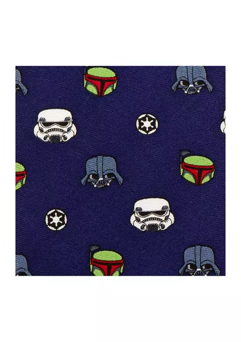 Midnight blue is the background color to this fun 100% silk tie for boys aged 3-6. Featuring woven images of the major Imperial villains Darth Vader, Stormtroopers, and Boba Fett, you’ll also find Imperial symbols scattered throughout. Also features a zipper closure to ensure your little man can dress himself independently. Officially licensed by Lucasfilm LTD.