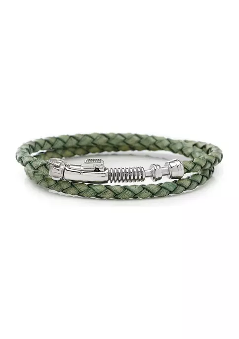 Made with braided green leather, this men’s bracelet is a sleek addition to any cuff. Featuring Luke’s lightsaber following the events in The Empire Strikes Back, the trigger clasp is located on the power switch; allows for the feeling of turning your personal lightsaber on and off. This bracelet is the perfect accessory to complete your look. Officially licensed by Lucasfilm LTD.