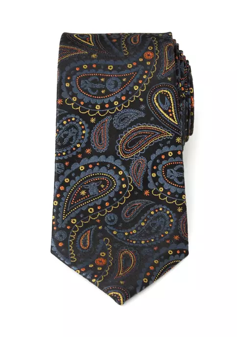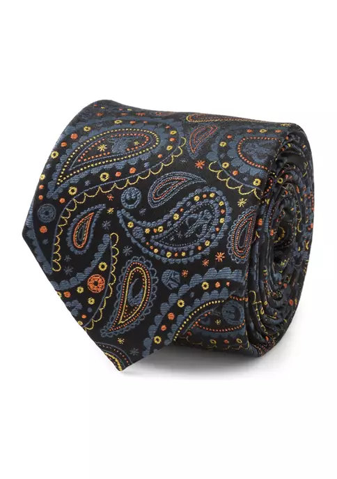 The world of the Mandalorian comes to life on this stunning, intricate, and brightly colored paisley tie. The Child, Mando’s helmet, and the mythosaur skull are just a few items that make up the paisley design. Made with 100% silk, this black tie with navy, yellow, and orange stitching will have you studying it for hours to find every symbol. Can you find them all? Officially licensed by Lucasfilm LTD.