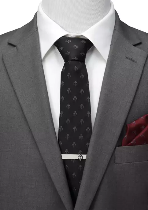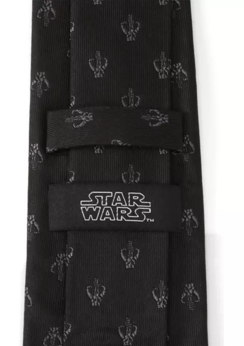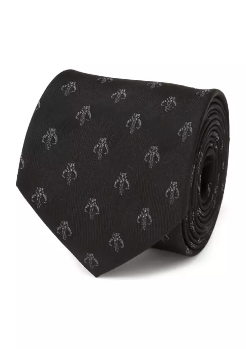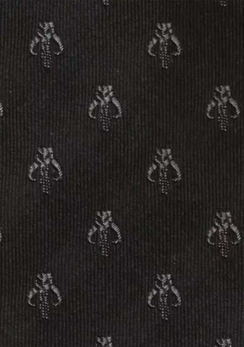 Simple and functional, this 100% silk tie is perfect for all Star Wars and Mandalorian fans. Featuring neat rows of charcoal gray Mythosaur skull logos on a pure black background, this tie will definitely gain you admittance to the Guild. Officially licensed by Lucasfilm LTD.