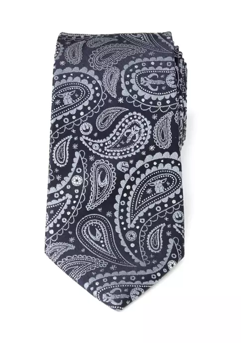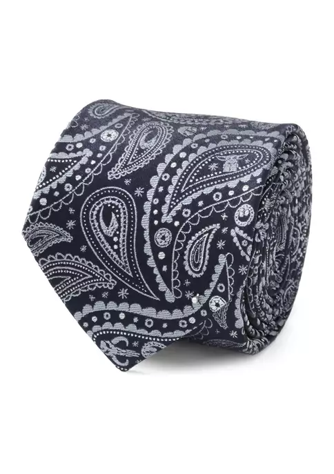 The world of the Mandalorian comes to life on this stunning and intricate paisley tie. The Child, Mando’s helmet, and the mythosaur skull are just a few items that make up the paisley design. Made with 100% silk, this midnight and sky blue tie will have you studying it for hours to find every symbol. Can you find them all? Officially licensed by Lucasfilm LTD.