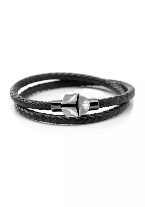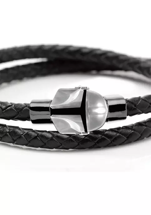 Made with braided black leather, this men’s bracelet is a sleek addition to any cuff. Featuring a 3D rendition of the Mandalorian’s helmet at the stainless steel magnetic closure, this bracelet is a perfect addition to any ensemble. Pair with our other Mandalorian itrems for a finished look. Officially licensed by Lucasfilm LTD.