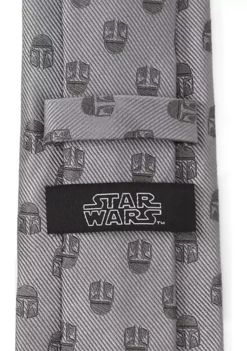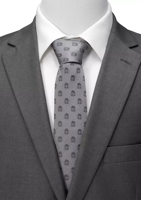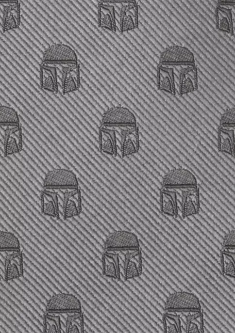 Members of the Mandalorian Guild are known for never taking off their helmets, so we thought they deserved a tribute. 100% pale gray silk forms the background for a series of subtle charcoal gray helmet icons, making this tie the ideal accessory when a real helmet isn’t available. Officially licensed by Lucasfilm LTD.