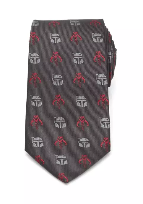 “This is the way.” Charcoal gray forms the rich background to this elegant Mandalorian neck tie, featuring crimson Mythosaur icons and silver Mando helmets. No matter where your adventure takes you next, this tie will ensure you look great when you get there. Officially licensed by Lucasfilm LTD.