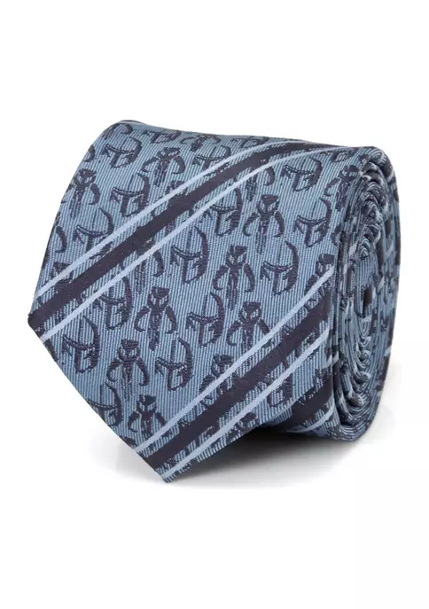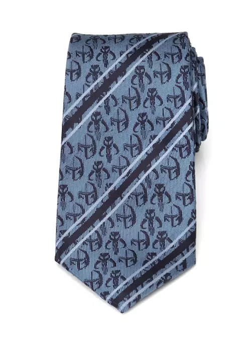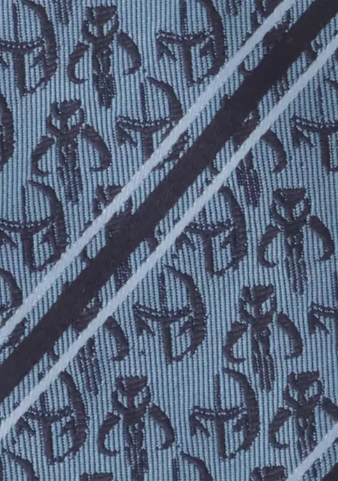 “When one chooses to walk the way of the Mandalore, you are both hunter and prey.” Choose your own path through space and time and honor the Mandalorian legacy with this unique blue and navy woven tie. Featuring columns of Mandalorian helmets and Mythosaur icons, this is about to become your new favorite accessory. Officially licensed by Lucasfilm LTD.