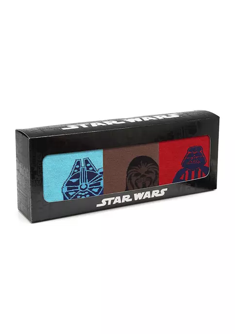 Celebrate the best dynasty in the galaxy with this set of Star Wars themed socks. Featuring large mod profiles of Darth Vader, Chewbacca, and the Millennium Falcon on the ankles, you’ll also find contrasting seams carefully sewn through the heel and toe for strength, and a cushiony-soft band around the top. Officially licensed by Lucasfilm LTD.
