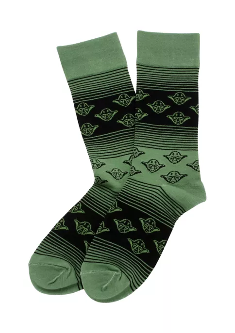 A master of the force you will become with these Yoda Star Wars socks, featuring Jedi Master Yoda. in an on-trend ombre design in green and black. Treat your feet to force-ful style with our officially licensed collection of Star Wars dress socks. Socks are made with JuteCell© yarn, which is eco friendly, antimicrobial, and has moisture wicking properties. Officially licensed by Lucasfilm Ltd.
