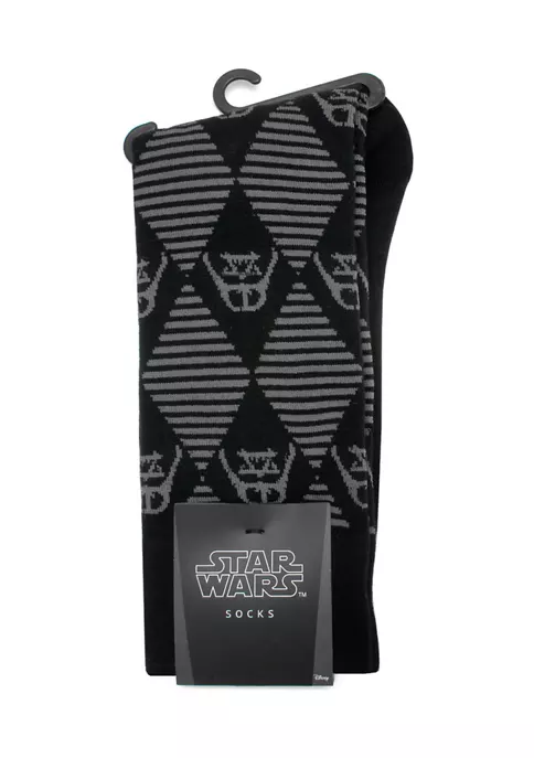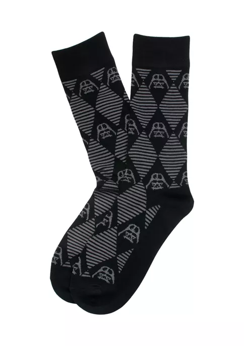 These black Star Wars socks feature the Darth Vader’s mask and argyle stripes.