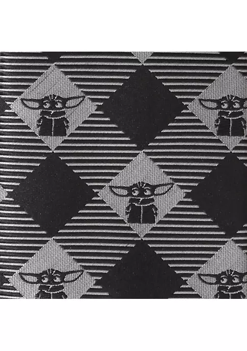 Honor the one whose safety deemed such destruction with this elegant black and silver gray tie. Featuring a series of icons of The Child on a check pattern, it’s an elegant way to celebrate the safe passage of the little one who does “the magic hand thing”. Shame it doesn’t come in baby sizes, really. Officially licensed by Lucasfilm LTD.