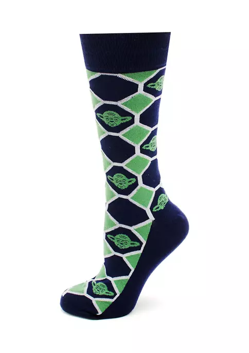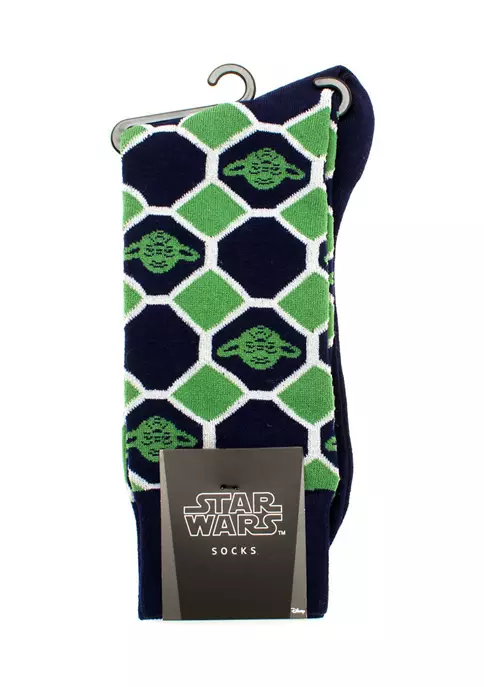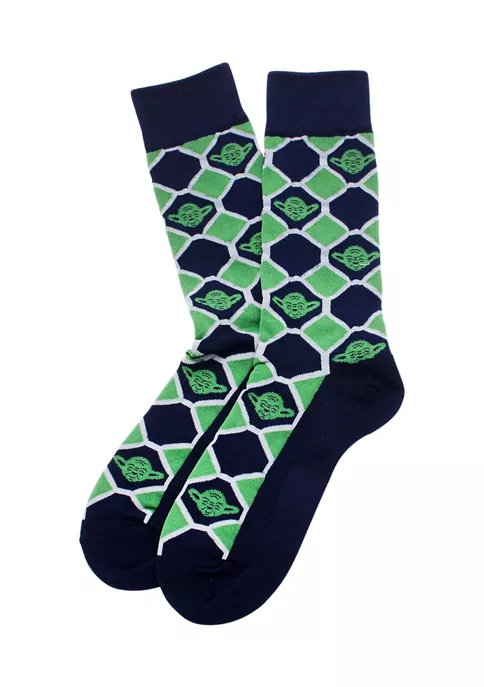 Fancy feet you will have, in this set of green and navy checker socks. Portraying the image of Yoda against a patterned backdrop, these moisture-wicking socks also feature a comfy wide band at the opening to keep your socks in their rightful place. Officially licensed by Lucasfilm LTD.